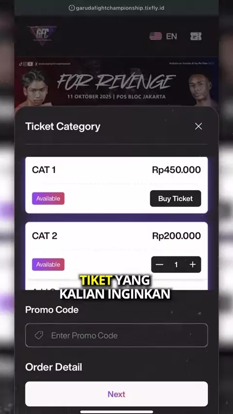 Banyak yang tanya cara beli tiket untuk Nonton langsung event @garudafightchampionship 📌 🗓️ Sabtu, 11 Oktober @posblocjkt JAKARTA PUSAT Ini dia caranya gaes, jadi kalian bisa beli dari link Bio yang ada di profil atau T1ktok GFC Jamgan sampai kehabisan tiket gaess‼️🥳 @GARUDA FIGHT CHAMPION #garudafightchampionship #boxing #kickstriking