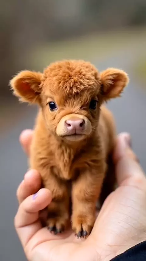 Imagine uma mini vaca das terras altas do tamanho de um tapa.