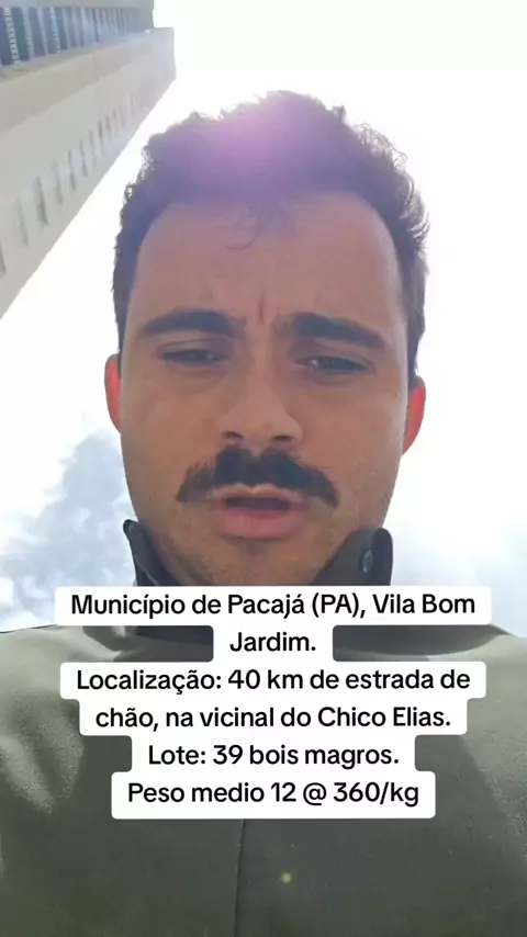 Município de Pacajá (PA), Vila Bom Jardim. Localização: 40 km de estrada de chão, na vicinal do Chico Elias. Lote: 39 bois magros. Peso medio 12 @ 360/kg