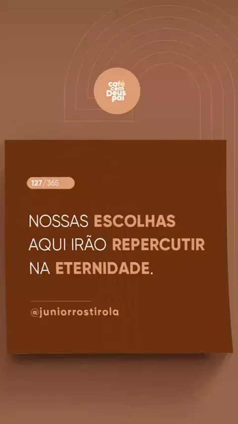 "Como filhos de Deus, nĂŁo estamos apenas vivendo por agora, mas caminhando rumo Ă  eternidade. Por isso, Ă© essencial viver com propĂłsito, alinhando nossas decisĂ”es com os princĂ­pios da Palavra de Deus. O que vocĂȘ decide hoje pode ecoar para sempre. Cada atitude, palavra e decisĂŁo tem valor diante de Deus. Por isso, viva hoje com olhos na eternidade, escolhendo todos os dias aquilo que agrada ao Pai." #decisĂ”es #DeusnoControle