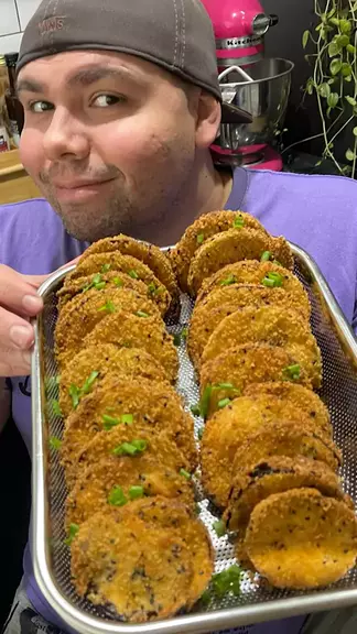 SALGADO DE BATATA CROCANTE E CREMOSO BATATÃO RECHEADO COM PRESUNTO E QUEIJO INGREDIENTES 1 KILO DE BATATAS COZIDAS E AMASSADAS CEBOLINHA E SALSINHA A GOSTO 1 PACOTE DE 40 GRAMAS DE QUEIJO PARMESAO RALADO SAL E PIMENTA DO REINO A GOSTO PARA RECHEAR PRESUNTO E QUEIJO PARA EMPANAR 3 OVOS AMIDO DE MILHO FARINHA PANKO OLEO PARA FRITAR #Receita #roça #rotina