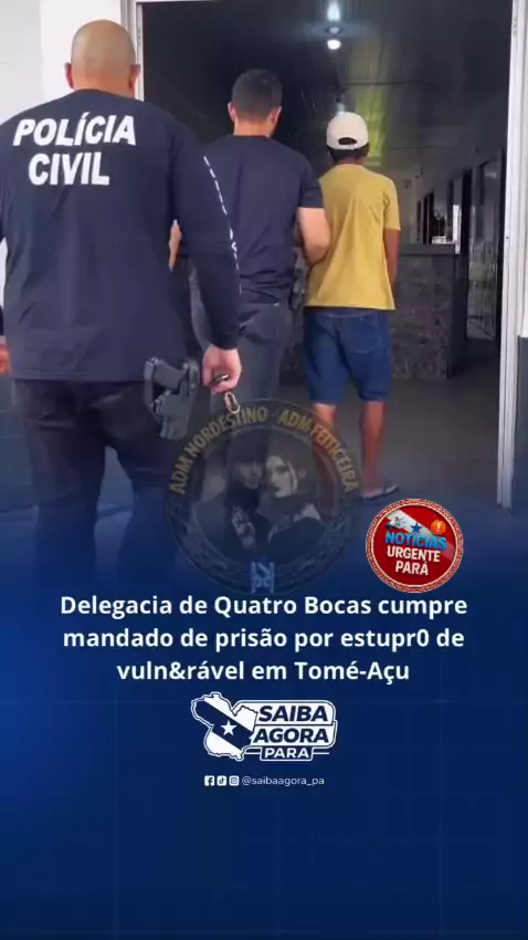 #🔮 QUATRO BOCAS COMPRE MANDADO DE PRISÃO POR ESTUPRO DE VULNERÁVEL EM TOMÉ-AÇU🚨🚔 Na manhã desta quinta-feira,(5) de fevereiro de 2026, a delegacia de polícia civil de quatro bocas, cumpriu um mandato de prisão preventiva expedido pela vara única de tomé-açu/ PA. O mandado foi contra Ednilson Maciel Vaz, conhecido como "Mudo", investigado por crime previsão no artigo 217-A do código penal que trata do crime de estupro de vulnerável.A prisão aconteceu após um trabalho de investigação e buscas