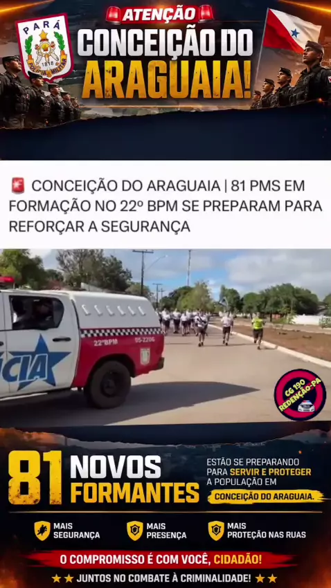 #*CONCEIÇÃO DO ARAGUAIA / PARÁ* Em Conceição do Araguaia, *81 novos formantes da Polícia Militar* estão se preparando com dedicação, disciplina e coragem para servir e proteger a nossa comunidade. Cada passo dado é um compromisso renovado com a segurança de todos. O futuro se constrói com mais presença, mais proteção nas ruas e um compromisso firme com você, cidadão. @22_bpm_cda @22bpmcda