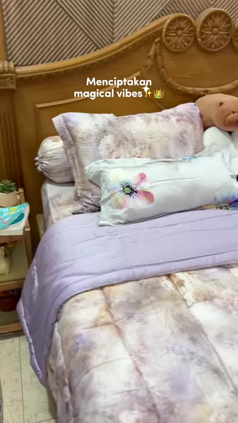 POV: Jadi Princess sehari👸💜 pakai sprei Tencel motif cuantikss yang 1 ini: VALHALLA LILAC✨ #SpreiTencel #TencelLyocell #BedcoverTencel #Spreiimport #BedcoverPremium