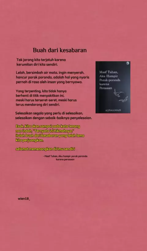 Buku Alfi Alghazi memang sebagus itu, klik keranjang kuning untuk CO ygy#bukurekomendasi#menikmatikepergianmu#yaallahakupulang#maaftuhanakuhampirporakporanda#alfialghazi