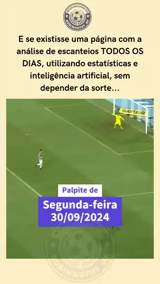 Palpites de escanteios para Segunda-feira dia 30/09/2024. ⚽ Comente a palavra GRUPO para receber o acesso ao meu grupo do WhatsApp 100% gratuito, e receba análises direto no seu celular com quase 100% de assertividade. . . #palpitesdodia #palpites #palpitesgratis #palpitesdefutebol #Futebol