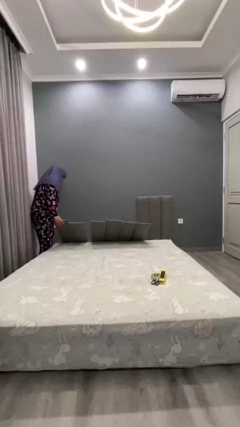 Akhirnya setelah 1 bulan di dempetin di tembok aja, ni headboard kita tempel juga😅😂 #headboard #headboardideas #headboardticktok #headboarddiy #headboardmakeover #headboardwall #makeoverkamar #makeoverroom #makeoverchallenge #kamartidurminimalis #kamartidurnyaman #kamarmungil #kamaraesthetic