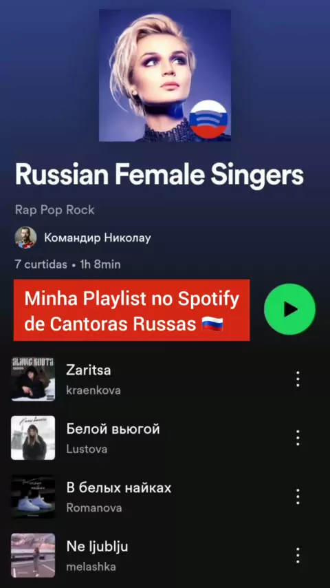 Minha Playlist no Spotify de Cantoras Russas 🀍💙❀ #Rússia #Música #Music #Музыка #Spotify