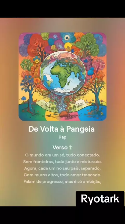 Em um mundo cada vez mais dividido, minha nova música 'De Volta à Pangeia' é um chamado para a união global. Imagine um planeta sem fronteiras, onde somos todos um só. Vamos quebrar os muros e nos reconectar como na época da Pangeia! 🌍✨ Vem comigo nessa jornada pela paz e solidariedade! Ouça agora e compartilhe essa mensagem de união. #Ryotark Hashtags: #MúsicaNova #DeVoltaÀPangeia #UniãoGlobal #PazNoMundo