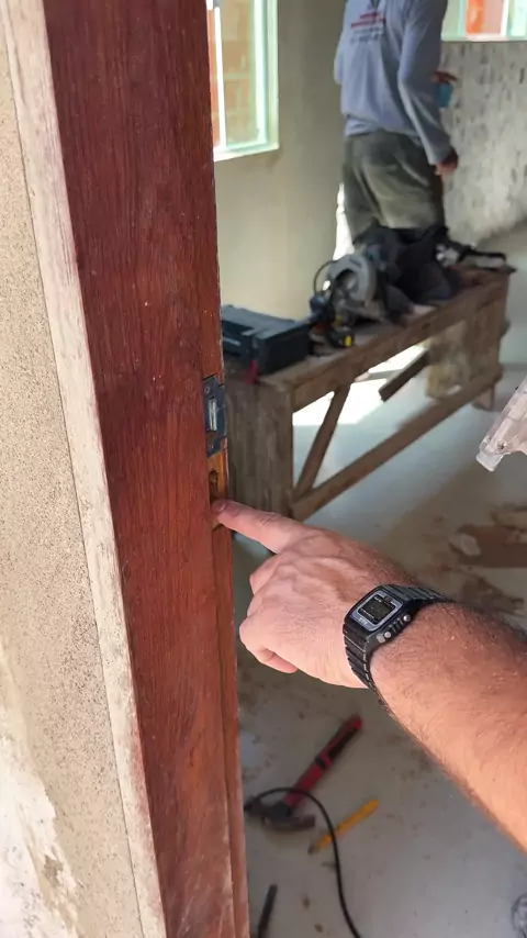 Furo da fechadura com tupia #pedreiro #construção #porta #Ultra10kvis #EstrelaDeFamília