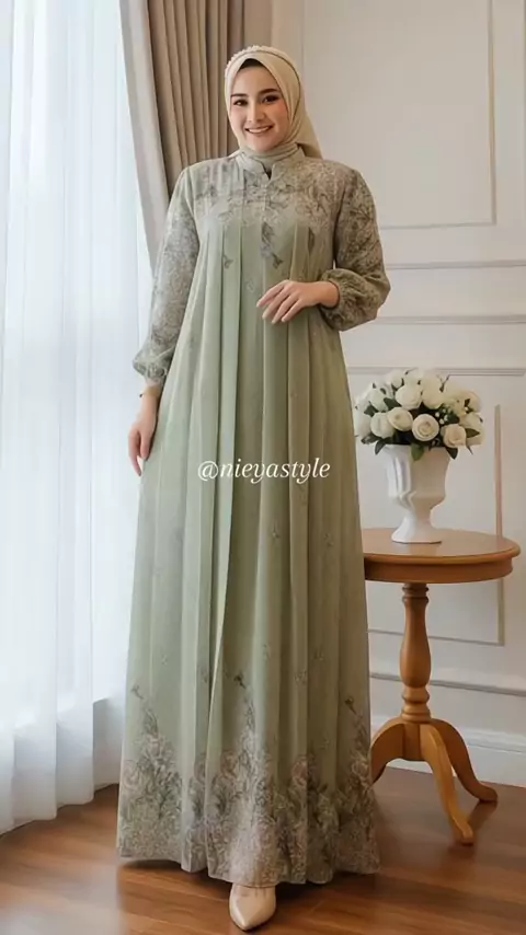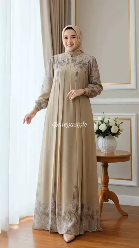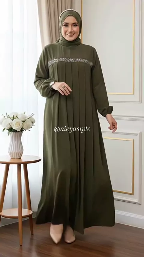 Rizha Boutique Dinaraa Dress Bahan Ceruty Kombinasi Airflow Model 2 Layer Nyaman & Elegan Gamis Muslim Belah Tengah #gamislebaran #dresslebaran #gamisceruty #gamisairflow #gamiscantik