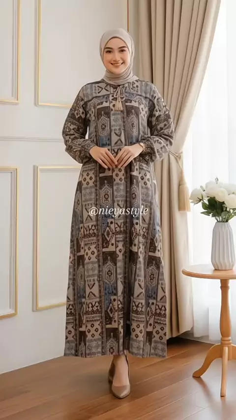Kolinda Midi Dress Rayon Motif wanita lengan panjang Muslim #mididresswanita #dressrayon #dressmuslimah #bajuwanita #dressmotif