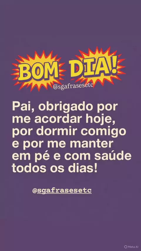 Pai, obrigado por me acordar hoje, por dormir comigo e por me manter em pé e com saúde todos os dias!