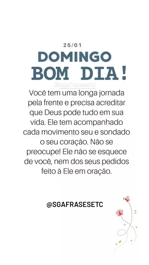 Você tem uma longa jornada pela frente e precisa acreditar que Deus pode tudo em sua vida. Ele tem acompanhado cada movimento seu e sondado o seu coração. Não se preocupe! Ele não se esquece de você, nem dos seus pedidos feito à Ele em oração.