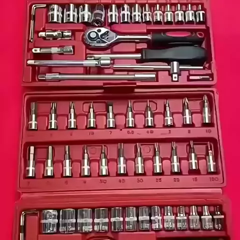 Kit Ferramentas 46 Peças Jogo De Soquetes Chave Catraca Reversível Com Maleta Jogo De Ferramentas