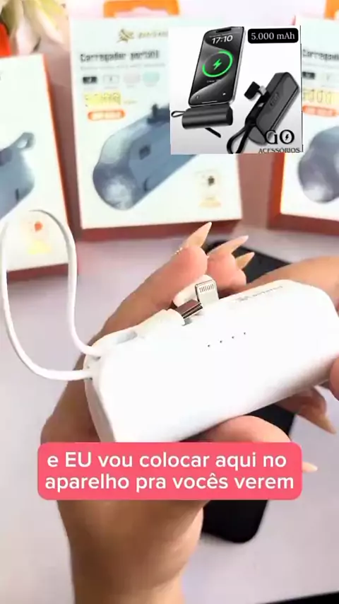Mini Power Bank 5000mAh Bateria Auxiliar Sem Fio 2em1 para iPhone/Tipo-C