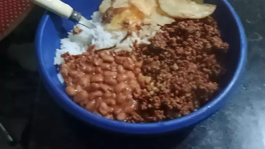 boa noite meus queridos seguidores bora jantar hoje é arroz feijão carne moída e batata frita 😋😋😋😋