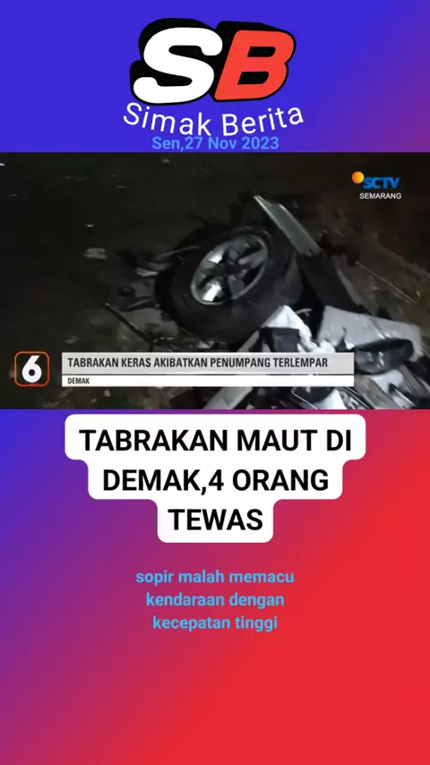 KECELAKAAN MAUT DI DEMAK,4 ORANG TEWAS @SnackVideo Official(O150000033094608) #berita #snackvideo #sctv #viral #comadakamidanakreditpinjaman3