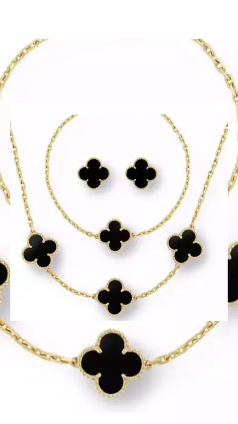 Kit Colar Choker E brinco Pulseira Virginia Trevo Preto Folheado a Ouro Coleção Outono. CRIADOR SHOP.