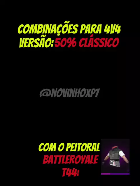 combinações para 4v4 Versão:50% clássico com Peitoral #BattleRoyalet44 #viral10kvils #viralizar vê Mais...