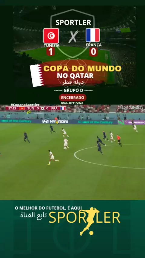 COPA DO MUNDO NO QATAR TUNÍSIA VENCE A FRANÇA POR 1 A 0 #Sports #futebol #copadomundo #TunísiaxFrança