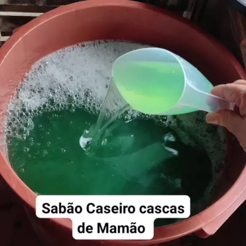 Este é o *Sabão Alvejante Cascas de Mamão* Top demais e com grande rendimento. Ah e teve 2 dicas de conserto (Talhou 🤭). Do canal @SaboariaCaseira10. Espero que gostem 😘. #sabaoalvejante #sabaoliquidotop #rendemuito