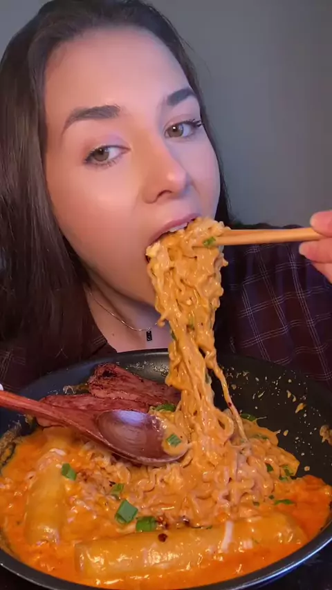 Rosé buldak Mukbang 🍜 @yonnas.yums #friedchicken #daveshotchicken #mukbang #food #mukbangeatingshow