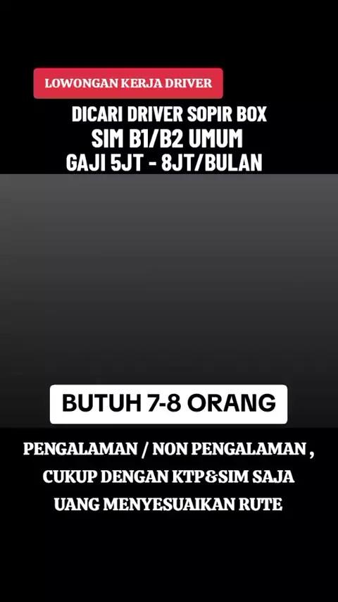 Loker driver box lintas luar , uang makan , rokok , kopi sudah disediakan, cukup dengan KTP dan SIM saja , langsung hubungi nomor WhatsApp di bio...#loker #infoloker #driver #truk #paket