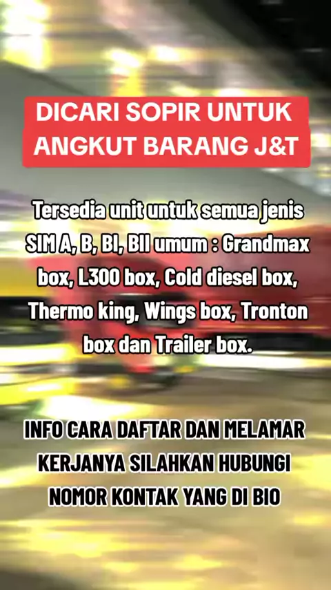 Dicari sopir secepatnya untuk semua SIM...!!#loker#lokerterbaru#lokerjakarta#lowongan#lowongankerja#infoloker#supir#supirtruck#loker2025#lokerindonesia#driver#drivermuda#paket#ekspedisi#jnt##masukberanda