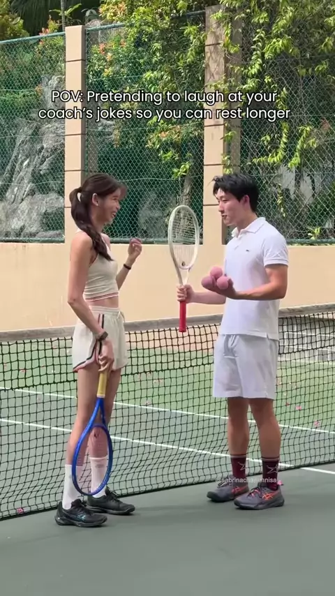 Tennis lesson 101: laugh at your coach's jokes = extra rest time 🎾😌 works every time HAHAHA! sorry, coach @scotty 🙂‍↔️ who can relate? 🙋🏻‍♀️#tennis#tennislesson#sabrinachairunnisa#scottlim#indonesia