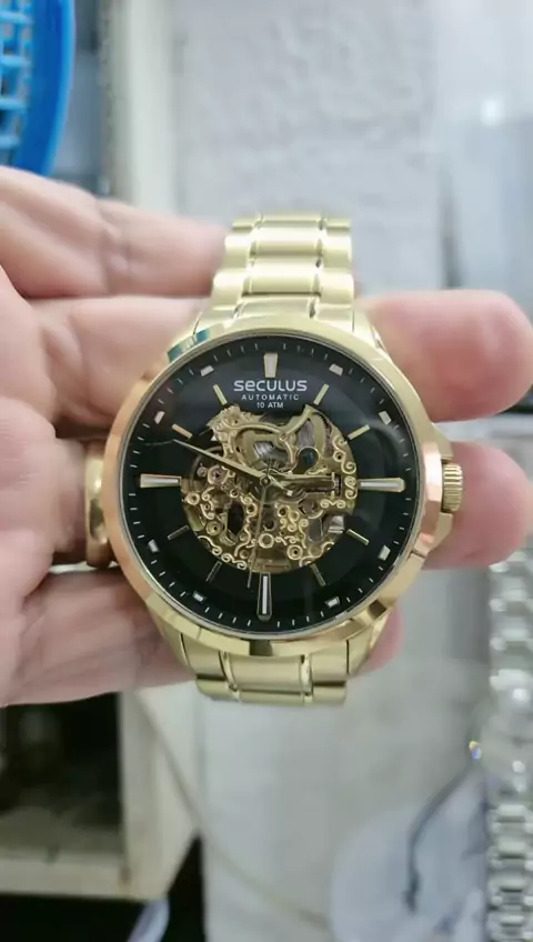 #Relogio masculino dourado excelente acabamento click e vá comprar
