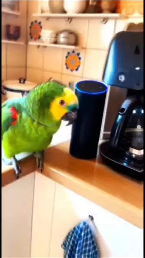 Papagaio tentando dar ordem pra Alexa 😂 #papagaiofalante #alexaengracada #pets #papagaio #KwaiBrazil