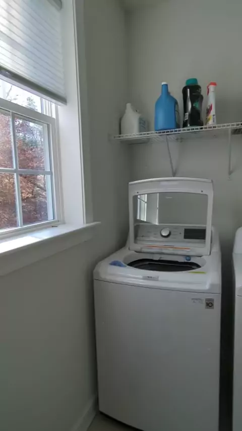 Bye bye builder grade lavanderia Novos armários ✓ Prateleira sobre a máquina de lavar e secar ✓ Papel de parede bonito ✓ # diyhome # diyhomemelhoria # diyhomerenovation # diyhomeprojects # diylaundryroom # diycabinets # diyfloatingshelf # diybuiltinstorage # CapCut