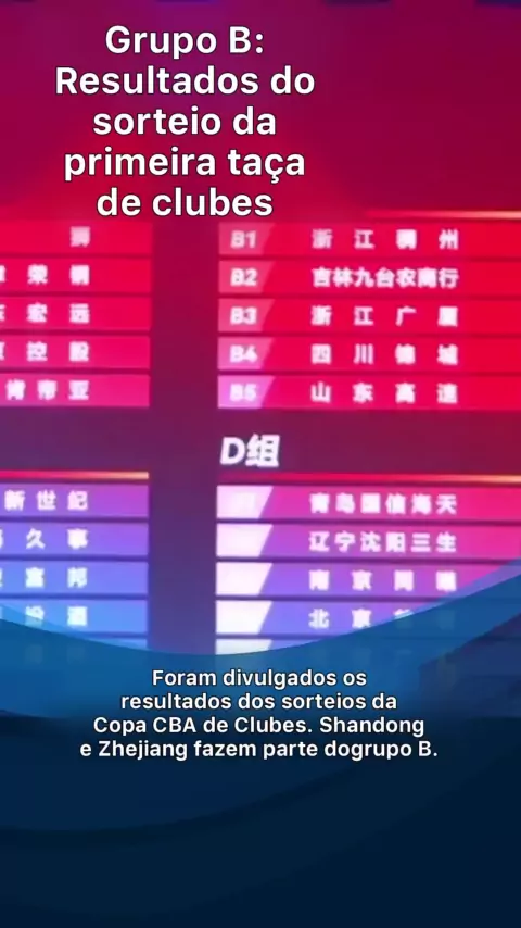 Foram divulgados os resultados do sorteio da Copa CBA de Clubes. Shandong e Zhejiang estão no Grupo B.