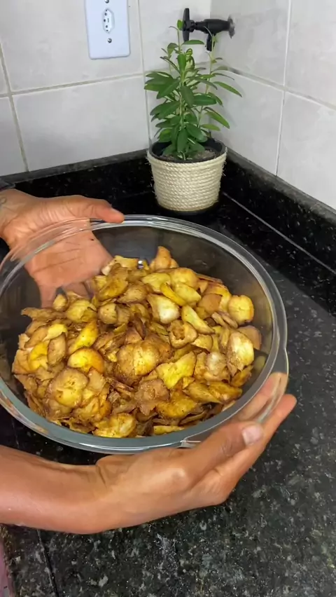 Chips de aipim. O melhor e mais crocante de todos. Eu amo!🤎 Dica: você pode fazer bastante e deixar guardado em saquinho plástico, dura até uma semana. E se caso ele murchar é só colocar na ayrfryer que ele fica crocante novamente. 😉 #foco #foconadieta #receita #receitafit #fitness