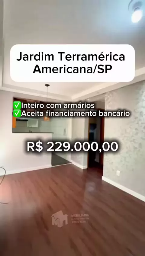 Apartamento TÉRREO à Venda – Jardim Terramérica I – Americana/SP 📍 Condominio Parque Alliance 💰 Valor: R$ 229.000,00 📐 Área útil: 45 m² 📄 Aceita financiamento 🐾 Aceita pet ✨ Características do imóvel: 02 quartos (1 com armário planejado) Banheiro social Sala de jantar Sala de TV com painel Cozinha planejada Área de serviço com armário 🚗 Garagem 01 vaga coberta 📍 Localização: Situado no bairro Jardim Terramérica I, em Americana/SP, com fácil acesso a comércios, escolas, mercados e à