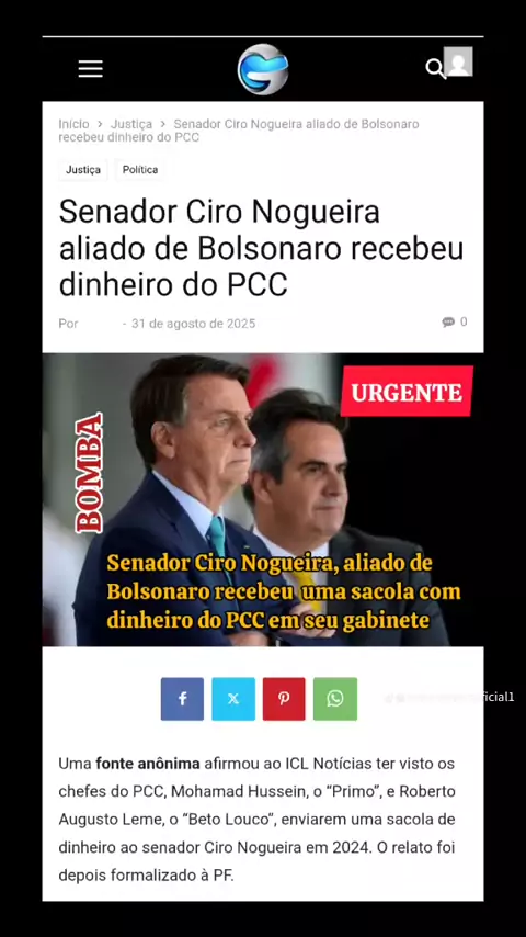 Senador Ciro Nogueira teria recebido uma sacola com dinheiro do PCC em seu gabinete #noticias #cironogueira #BOLSONARO #PF #Senado