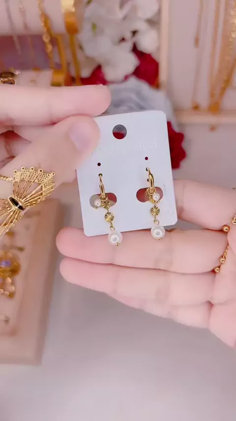 Anting jepit orina juntai mutiara cantik titanium anti karat bisa di pakai setiap hari #BeeblinkTitanium #anting #antingjuntai #antingmutiara #antingsimple