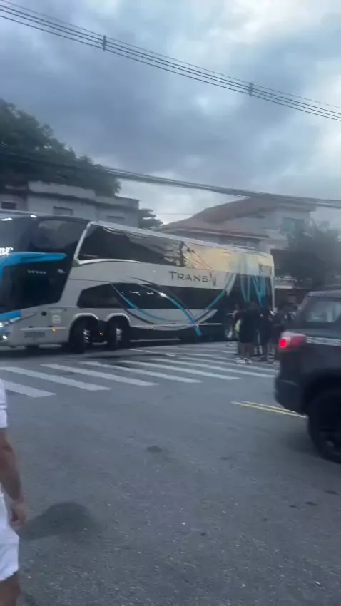 O Ônibus do Santos chegou na Vila Belmiro. #SantosFC