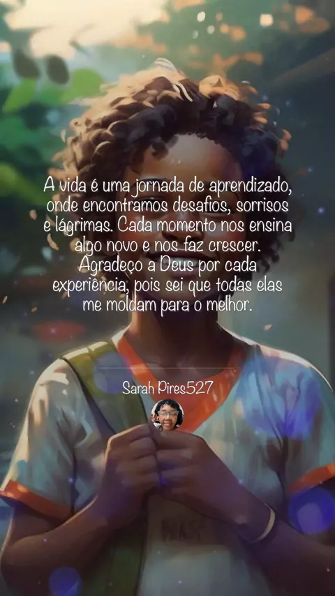 Sou :Sarah divorciada Sou uma pessoa feliz, pois apesar de saber que nem sempre a vida é fácil . Eu não sou perfeita, mas tudo que faço e digo vem sempre do coração.Tempestades? Só se for de alegrias. essa sou EU ? HÁ tenho 3flhos 6netos e 3bisnetas 😇