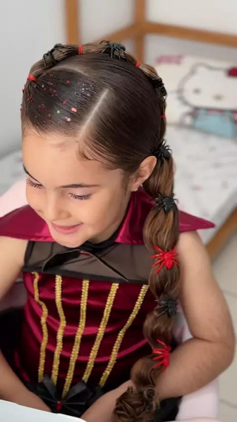 Penteado infantil Halloween fácil 🦇🧛‍♀️ Já salva para fazer e me segue para mais 👻 #Halloween #penteadohalloween