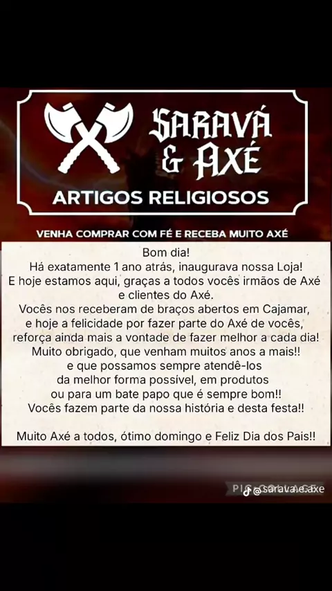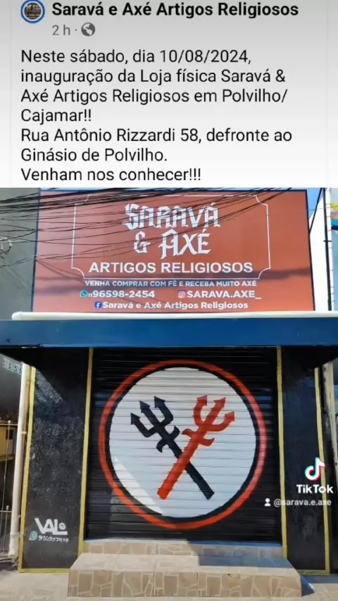 Somos a Loja Saravá & Axé Artigos Religiosos. Estamos localizados na Rua Antônio Rizardi 58 Polvilho Cajamar Venha nos visitar e conheça nossos produtos para o seu Axé!!