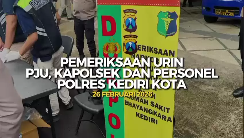 KEDIRI KOTA – Dalam rangka memastikan kedisiplinan serta komitmen terhadap pemberantasan penyalahgunaan narkoba di lingkungan internal, Polres Kediri Kota menggelar pemeriksaan tes urine bagi Pejabat Utama (PJU), para Kapolsek jajaran, serta anggota Polres Kediri Kota. Kegiatan yang dipimpin langsung oleh Kapolres Kediri Kota ini dilaksanakan sebagai bentuk pengawasan dan kontrol internal guna mendukung program Polri dalam mewujudkan institusi yang bersih dari narkoba (Zero Narkoba).