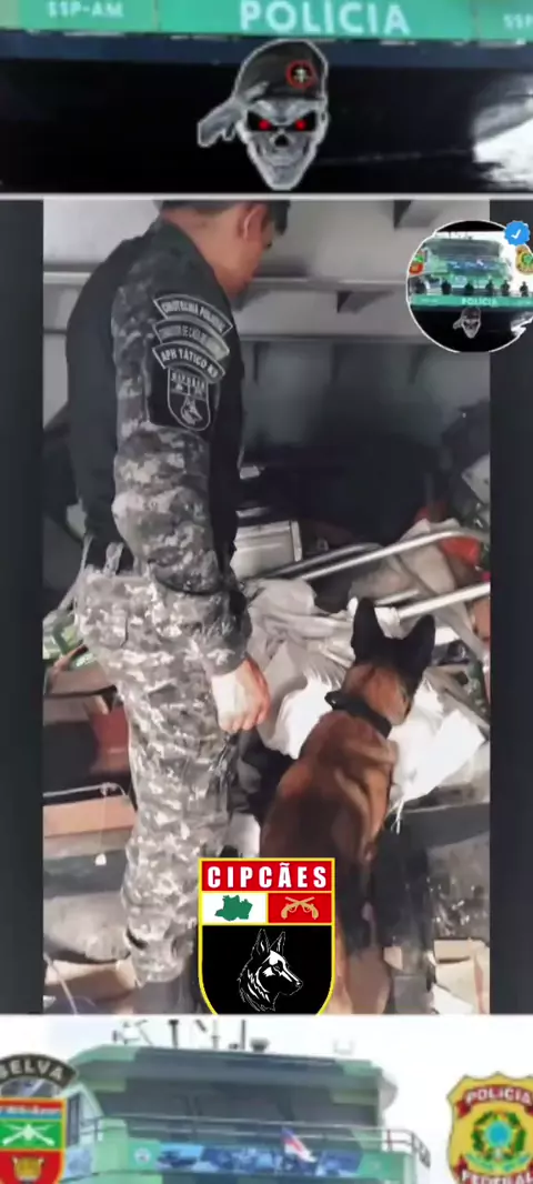 🚔🚨🚨🚨🚨🚨🚨🚨🚨🚨🚔 🦅⚡☠️AM: MANAUS CIPCAES No dia 03/01/2026, por volta das 07h40, a Polícia Militar do Amazonas, por meio da CIPCaes, com apoio do cão policial Arad e da VTR ROCAM, atendeu uma denúncia anônima via WhatsApp sobre tráfico de drogas no Porto Principal de Manaus, bairro Centro. Durante a averiguação, 04 indivíduos do sexo masculino foram identificados e abordados. Após o emprego do cão policial, houve indicação positiva no porão de uma embarcação, onde foram encontrados 14t,.