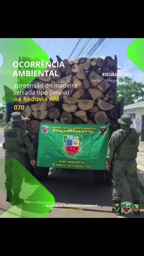 🚔🚨🚨🚨🚨🚨🚨🚨🚨🚨🚔 🦅⚡☠️AM: A Equipe do Batalhão de Policiamento Ambiental, em patrulhamento pela rodovia AM 070, realizou a apreensão de uma caçamba com 4 (quatro) indivíduos, com aproximadamente 12m estéreo de madeira serrada tipo (lenha). Durante a abordagem, foi constatada a ausência do Documento de Origem Florestal (DOF), obrigatório para o transporte do material. Assim configurando crime ambiental conforme o art. 46 da Lei nº 9.605/98 (Lei de Crimes Ambientais) enquadra a conduta,,
