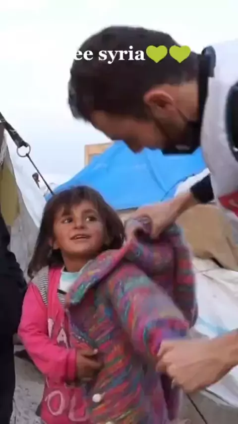 Lihat lah betapa bahagia nya gadis kecil itu,saat seorang donatur memberikan jaket kepadanya😇💙#freesyria