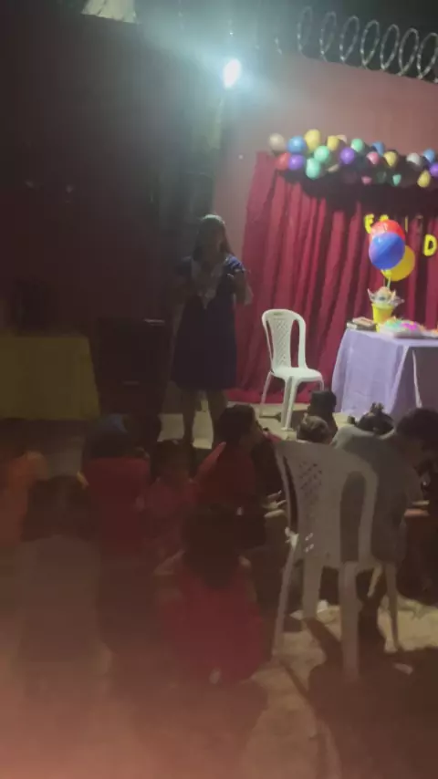 Tia Naisa orando encerando a nossa festinha pedindo a Deus muitas bençãos para nossas crianças.