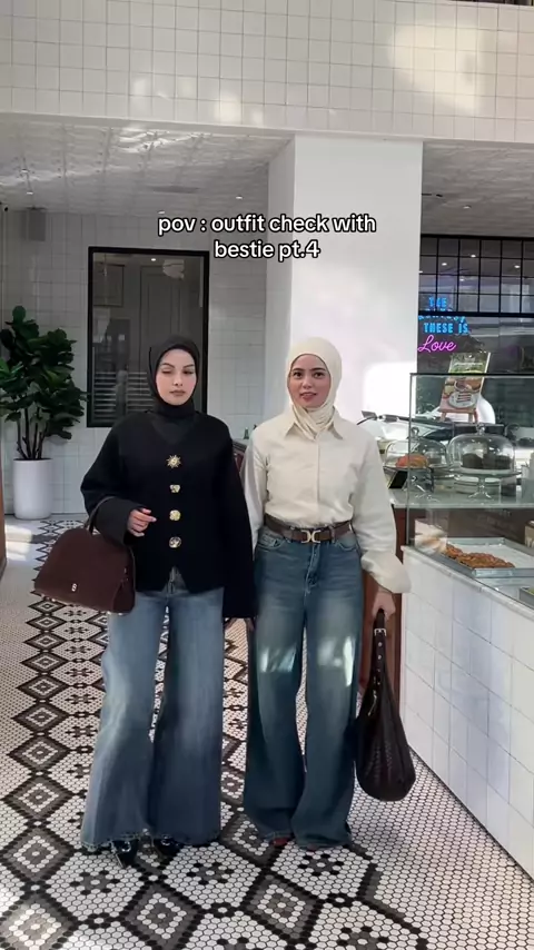 outfit check with bestie pt.4 tim black or pastel? next nya bikin tema outfit apalagi ya? @ig: syifasrahma #outfit #outfitcheck #outfitbestie #outfitinspo ゚