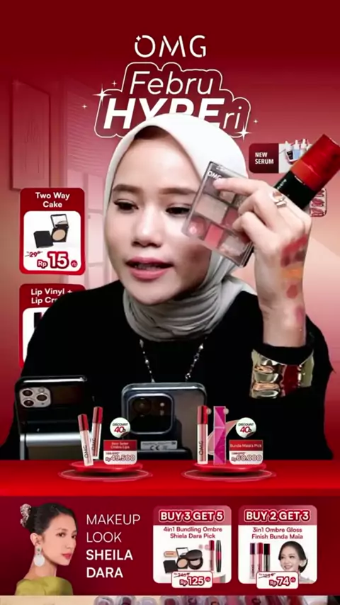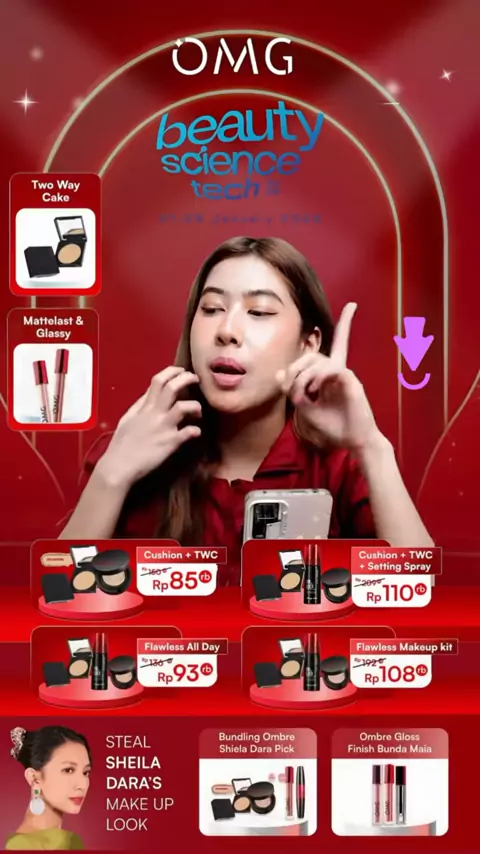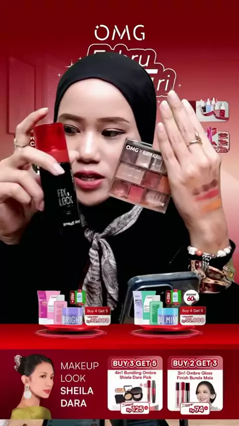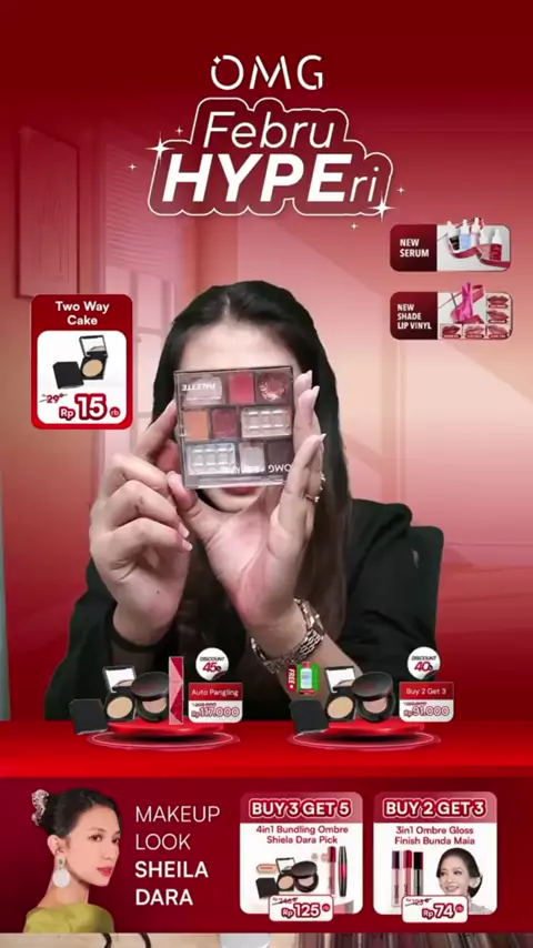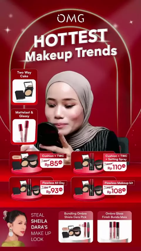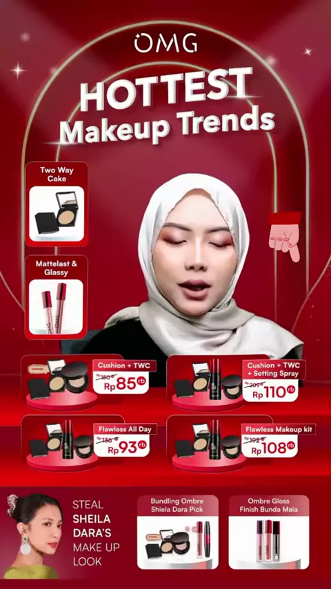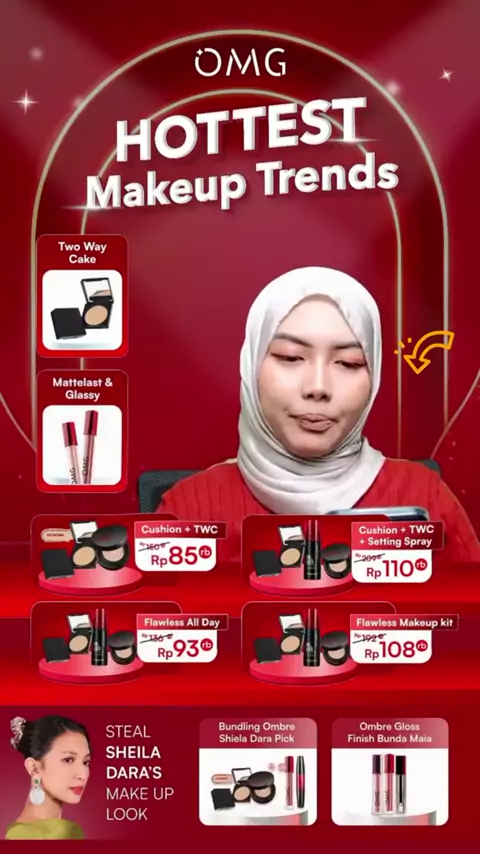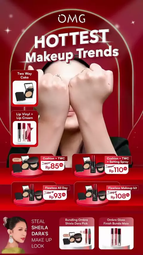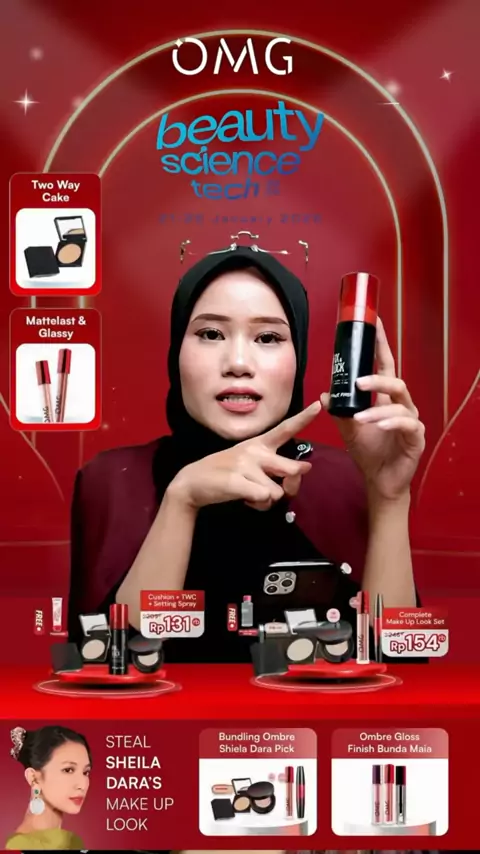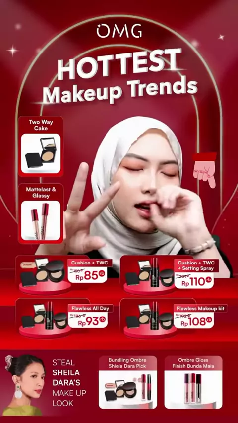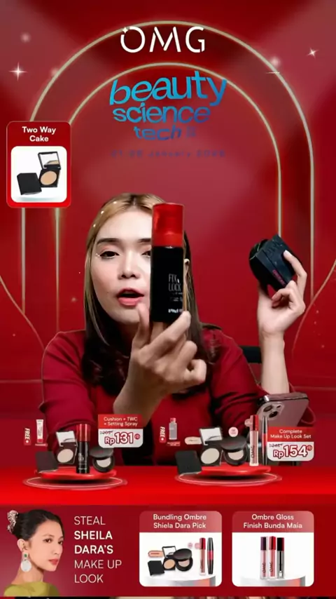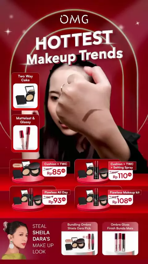 [SPECIAL OMG X JFC] OMG OH MY GLAM MAKE UP SET : Cushion, Setting Spray, Eyeshadow - Tahan Lama , Flawless & Anti Longsor