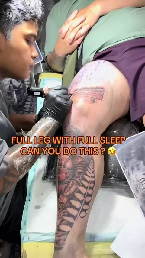 Full leg full sleep 🤣 Can you Sleep on your tattoo session ?#tirtabaliinktattoo#tatoolover#bali#australia#inked